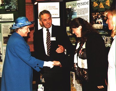 The Queen toured the second floor of the learning resources centre where there was an exhibition showing the ways in which each of the College's programmes collaborates with industry. At the same time, The Duke toured the first floor and saw demonstrations by students working in each of the programme areas. He was treated to displays from students involved in subjects including golf, dog grooming and trout fishing, and a demonstration on the use of information technology.The Royal party then moved to the ground floor, where they were introduced to two students — Timothy Oakes [HND in Ecology and Conservation Management], who has been awarded the Duchy of Lancaster Scholarship, and Jean Jones [National Diploma in Agriculture] who has received a grant from the Duchy of Lancaster Bursary.